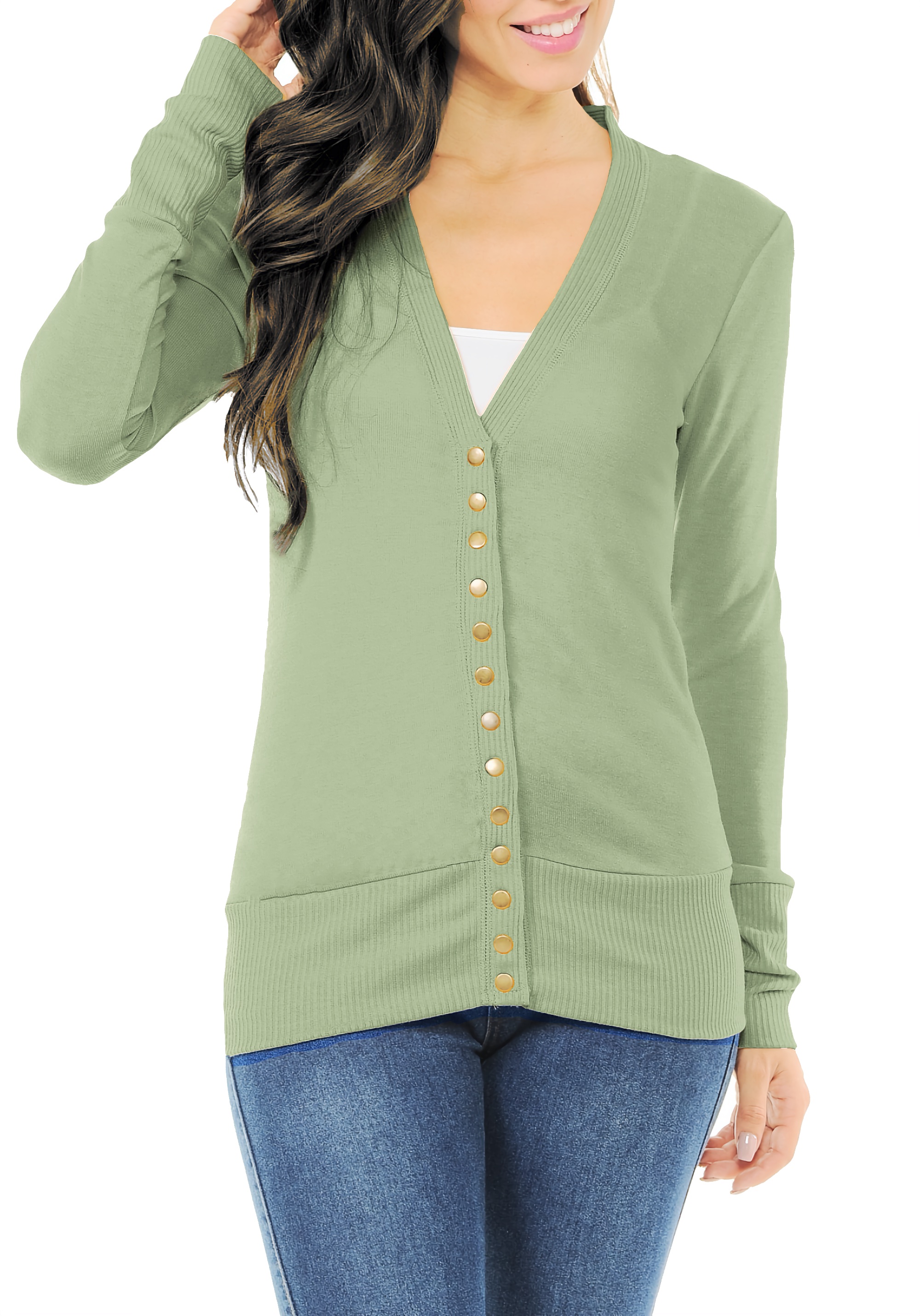 Clothingave Women S Long Sleeve Snap Button Sweater Cardigan W Ribbed Detail S 3x Female Cardigan Walmart Com